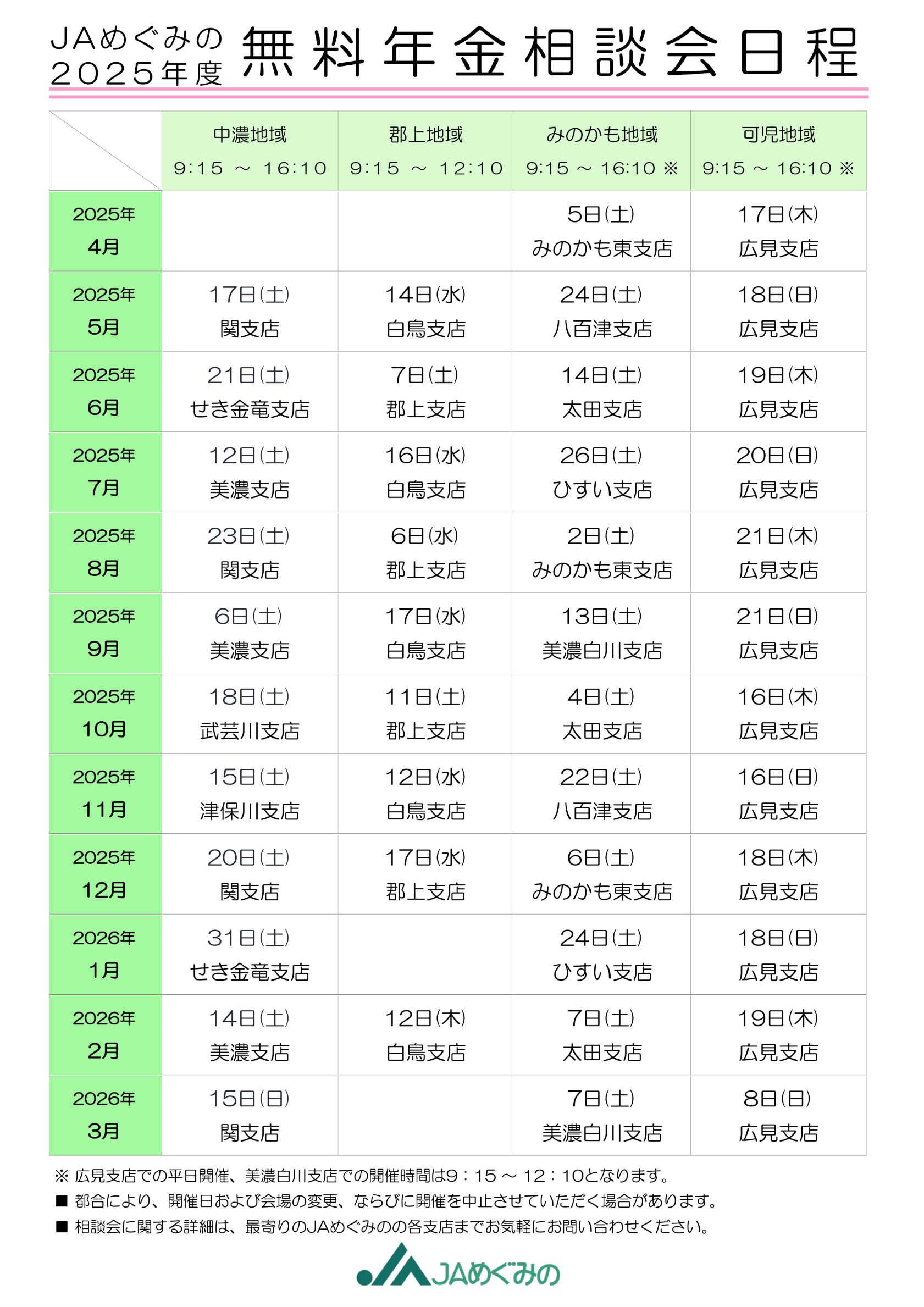 ◆年金相談会の日程はこちら