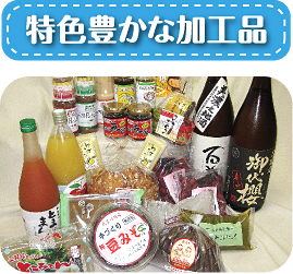 ![]() 地元農産加工グループ手づくりのお弁当、お惣菜のほか、味噌や漬物、ジュース、お菓子など種類も豊富な加工品。贈り物にもおススメです。当店オリジナル商品も人気。 |